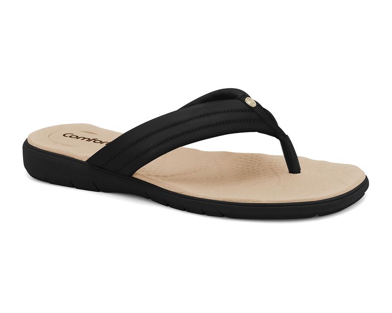 Este confortável chinelo preto é a combinação perfeita de elegância e funcionalidade. Com solado em PVC expandido levemente anabelado e texturizado, ele oferece estabilidade e segurança ao caminhar. A palmilha de EVA proporciona extremo conforto e maciez, enquanto a textura de esferas massageia os pés durante o uso, garantindo uma experiência agradável a cada passo. Além disso, os detalhes de brilho trazem um toque de sofisticação, tornando este chinelo ideal para qualquer ocasião. A altura do solado é de 2,5 cm, conferindo uma leve elevação que complementa o design elegante do modelo. Tecnologia Comfort Flow - Toda leveza do EVA aos seus pés. Um toque extra de conforto.