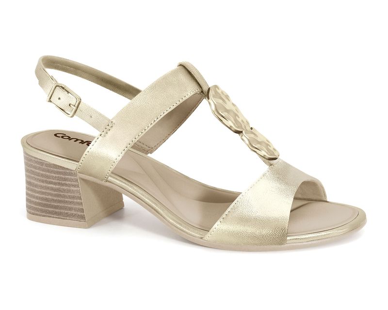 Sandália Salto Médio Dourada Comfortflex 2556407-6