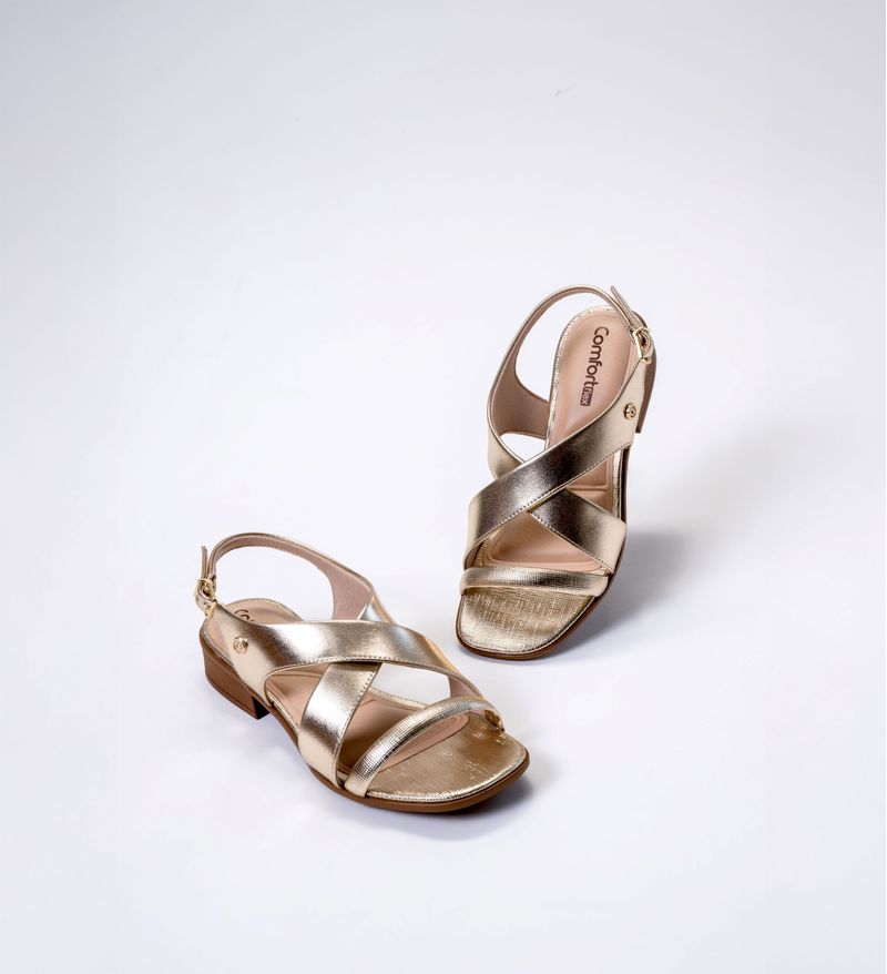 Sandália Salto Baixo Dourada Comfortflex 2561403-1