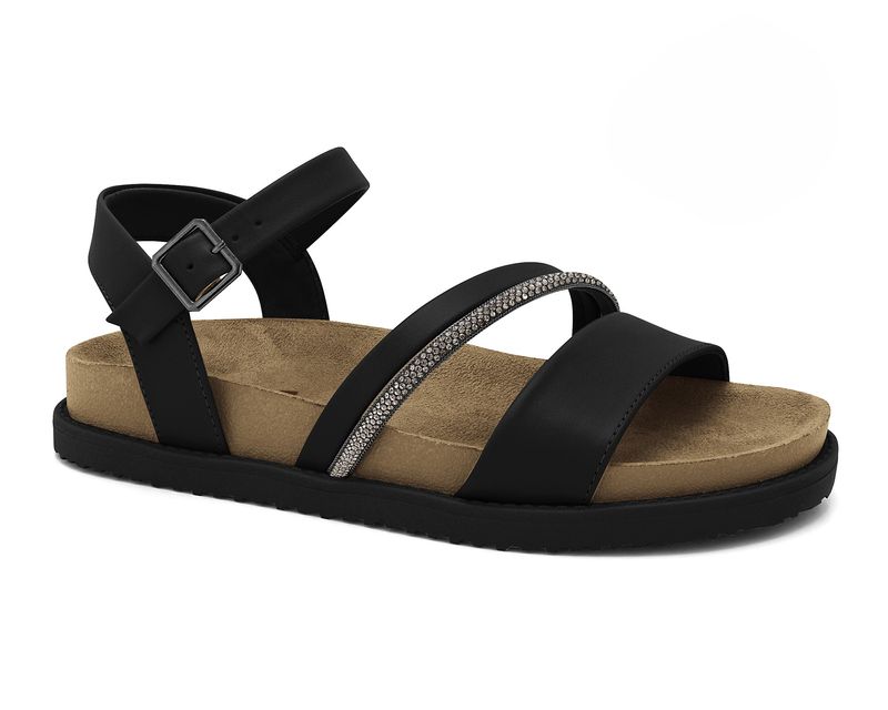 Sandália Papete Comfortflex com Detalhes em Pedraria, perfeita para unir elegância e conforto. Com tiras de material sintético de alta qualidade, pedrarias delicadas e palmilha anatômica, oferece estilo e praticidade para o dia a dia ou ocasiões especiais. Solado antiderrapante e fechamento ajustável com fivela garantem segurança e ajuste perfeito.