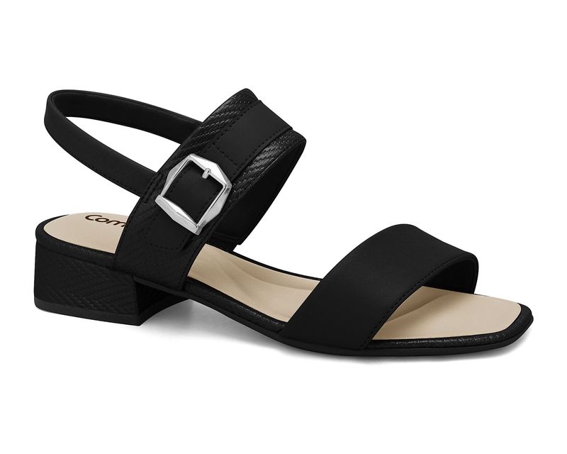 Sandália Salto Baixo Preta Comfortflex 2555303-2