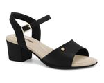 Sandália Salto Bloco Preta Comfortflex, ideal para quem busca conforto e sofisticação. Com cabedal sintético elegante, detalhe dourado e palmilha acolchoada, oferece ajuste perfeito com tira de fivela e segurança com sola antiderrapante. Perfeita para ocasiões casuais ou formais.