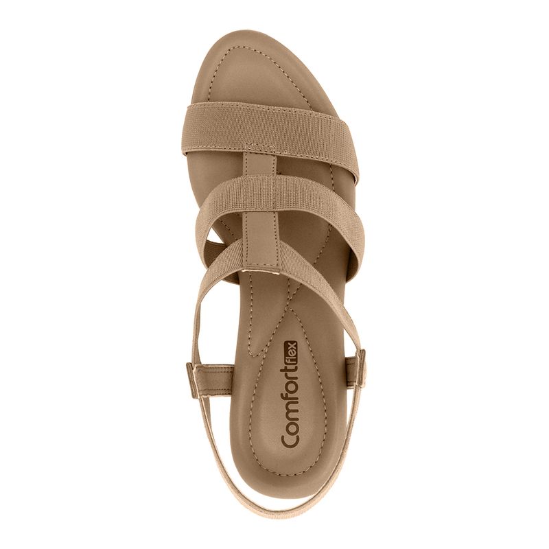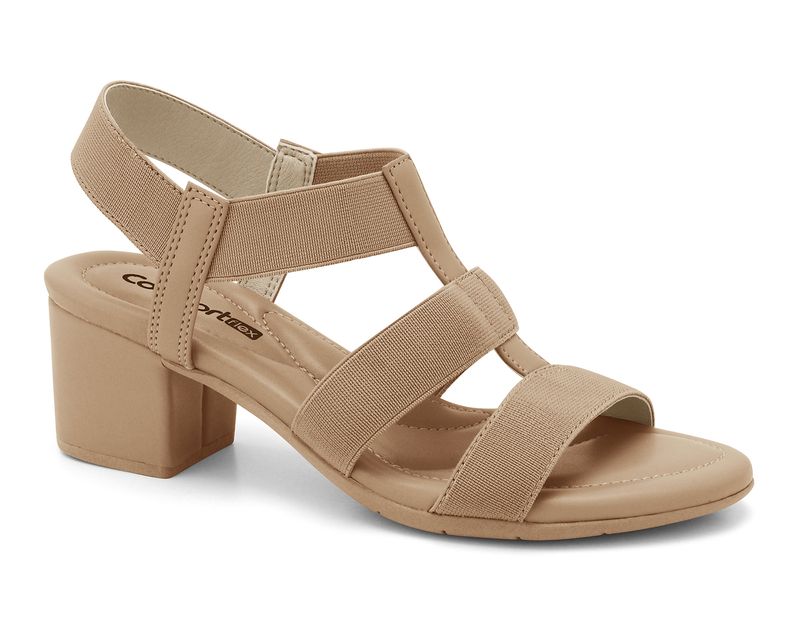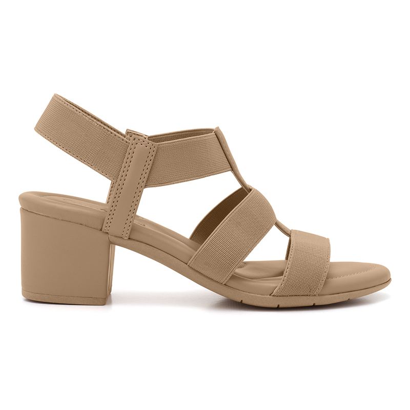 Sandália Salto Bloco Tiras de Elástico Caqui Comfortflex 2457403-1