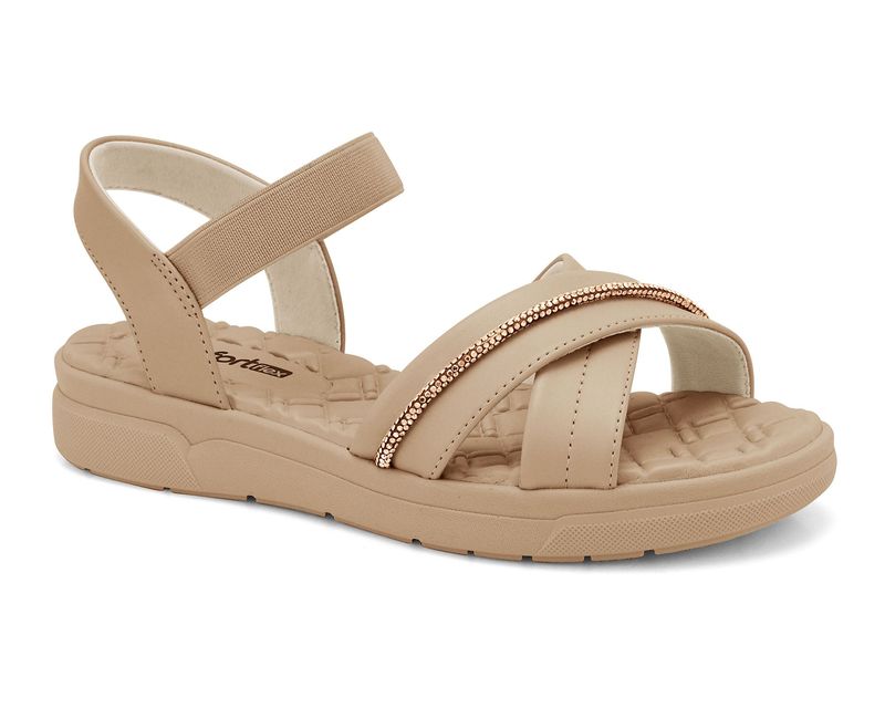 Quem disse que você precisa estar de salto para se sentir confiante? Esse modelo com detalhe de strass, além da palmilha confortável, apresenta as tiras cruzadas e elástico para um ajuste mais seguro. Sinta a liberdade e o conforto de caminhar com os calçados da COMFORTFLEX.