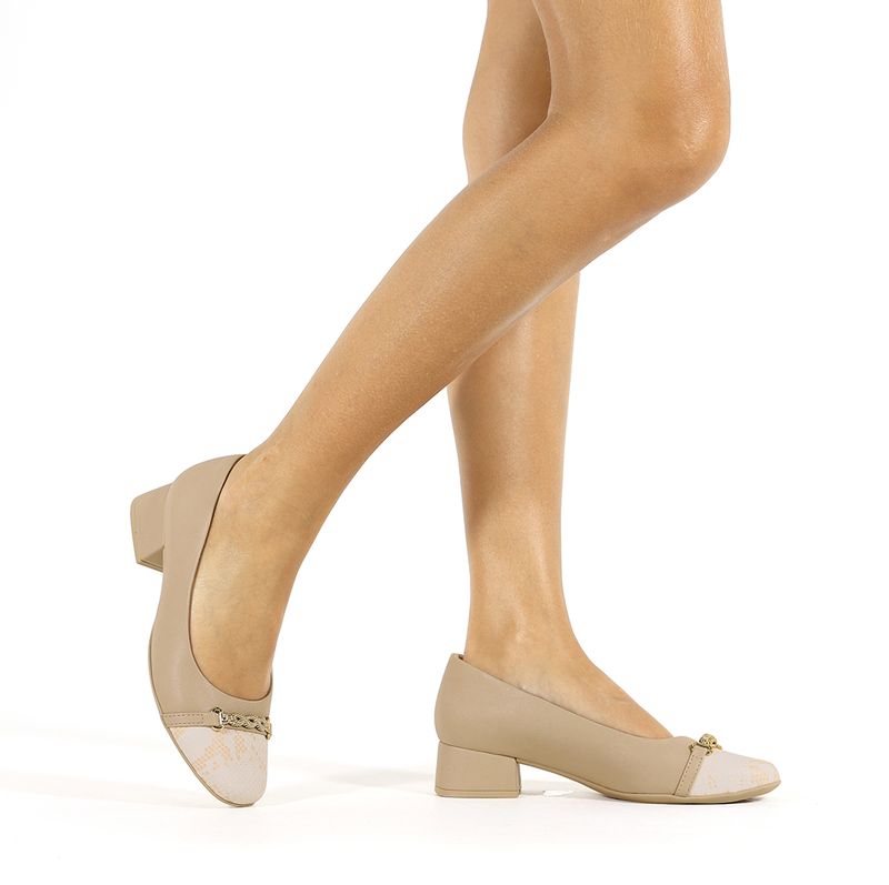 Experimente o Sapato Social Salto Bloco. Este sofisticado sapato feminino é perfeito para quem busca estilo e conforto. Com um salto bloco baixo que oferece suporte e estabilidade, além de um elegante detalhe dourado que adiciona um toque de classe. Ideal para o dia a dia, trabalho ou eventos especiais. Compre agora e complemente seu look com elegância!