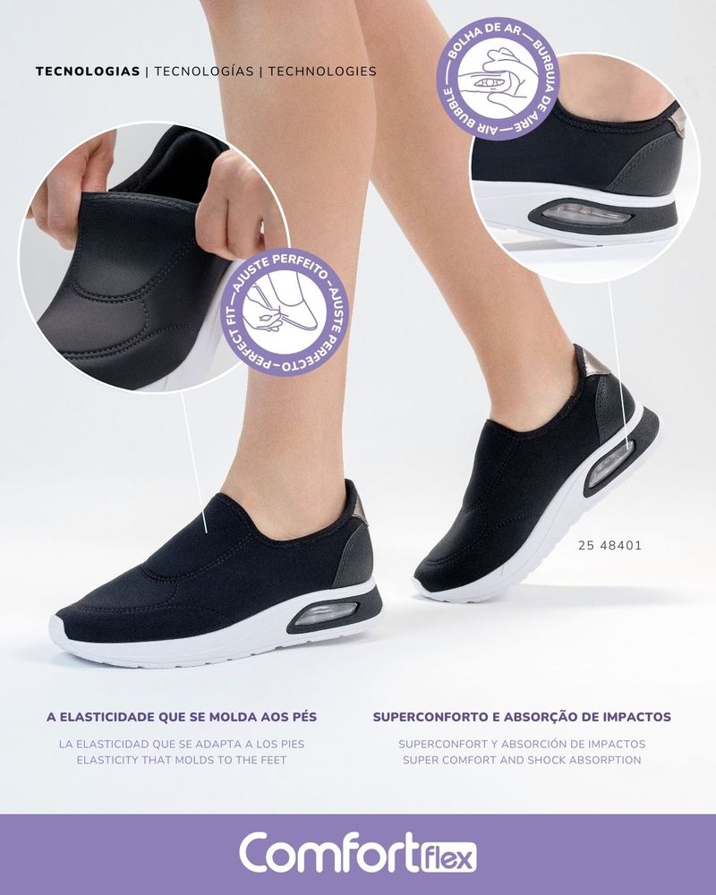 Chegue com estilo e conforto neste verão com o novo Tênis Knit Total Care Comfortflex, o tênis feminino leve, moderno e superconfortável que é o destaque da temporada!
